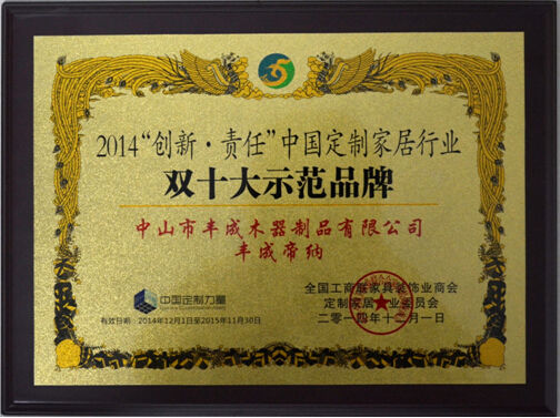豐成帝納憑借創(chuàng)新的設(shè)計,精益求精的品質(zhì)獲得了業(yè)界權(quán)威機構(gòu)全國工商聯(lián)家具裝飾業(yè)商會的認(rèn)可,2013獲得其頒發(fā)的“別墅豪宅首選品牌”,2014年獲得“雙十大示范品牌”。產(chǎn)品遍布國內(nèi)32個省、市和自治區(qū)等區(qū)域市場及遠銷中亞等國家。代理商遍及國內(nèi)大中城市,都是出于對豐成帝納純粹的愛和無價的信任。