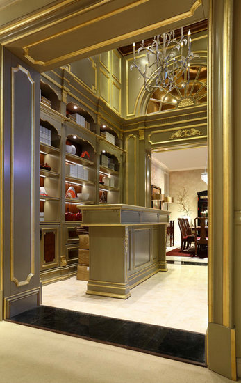 富邦美品展廳有300平米,一共展示了4個(gè)新的系列。很多觀展嘉賓都表示,富邦美品每次參展都給人耳目一新的感覺(jué)。這次使用的墨藍(lán)色基調(diào),就借用了歐洲古典主義建筑風(fēng)格,黃古銅材質(zhì)熠熠生輝,與砂巖質(zhì)感的墻面形成強(qiáng)烈對(duì)比,在強(qiáng)燈光下,外觀建筑感十足。