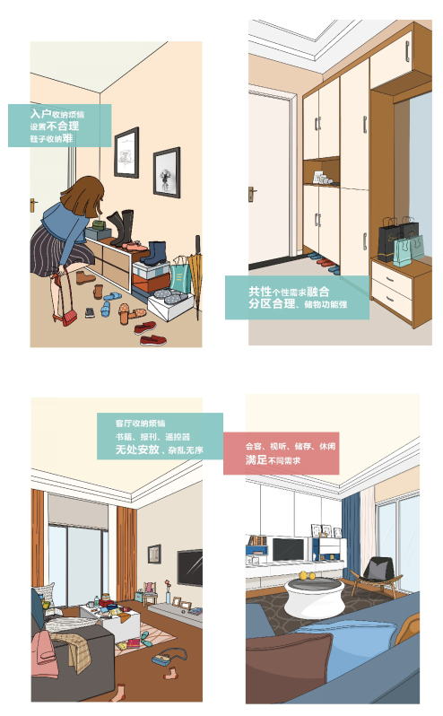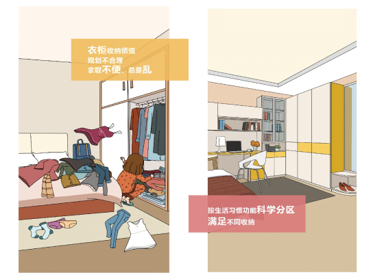 在此基礎(chǔ)上,針對目前中國家庭收納現(xiàn)狀,索菲亞還在白皮書中提出了用定制解決收納難題的理念,并為消費(fèi)者提供了入戶收納、臥室收納、客餐廳收納、書房收納、兒童房收納和陽臺收納系統(tǒng)。