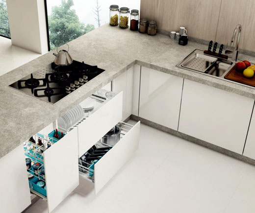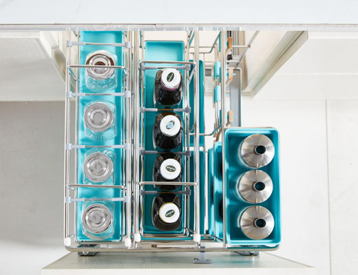 采用三維立體空間設(shè)計,籃體每一處空間都暴露在設(shè)計師的眼里,根據(jù)特定的廚房環(huán)境和功能布置,空間得到合理布局,最大限度提高籃體的儲存量,據(jù)統(tǒng)計,有效提高籃體30%-50%的空間利用率。