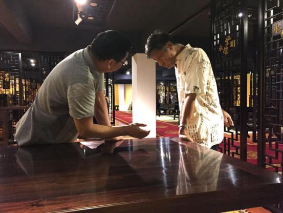 2016年9月24日,故宮博物院研究員胡德生也專程來到寧波嘉木明韻紫檀藝術(shù)館,他盛贊“嘉木明韻”對傳統(tǒng)技藝的傳承和發(fā)揚,肯定了“嘉木明韻”團隊愛木、惜木的敬畏精神和追求極致的匠心。