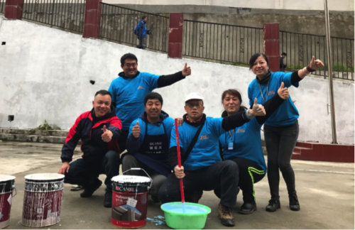 3月30日,駱駝漆攜手中國扶貧基金會、君愛公益發(fā)展服務中心,來到了成都雅安寶興縣鹽井中心校,為學校的外墻進行了翻新施工。