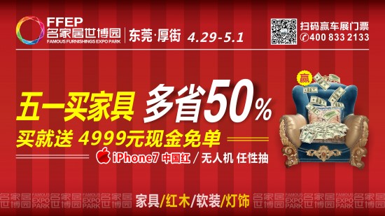 這里,是中國東莞名家居世博園“五一狂歡”的現(xiàn)場。在這里,40萬平方米超大規(guī)模,500工廠旗艦店、20萬件最新、最經(jīng)典家具飾品、客廳沙發(fā)節(jié)、中式紅木節(jié)、軟裝飾品節(jié)同期綻放;在這里,不止預(yù)約報(bào)名送車展門票、看無人機(jī)表演,買家具還送4999現(xiàn)金免單、中國紅iPhone7、智能無人機(jī)、萬能旅游卡以及千萬豪禮。