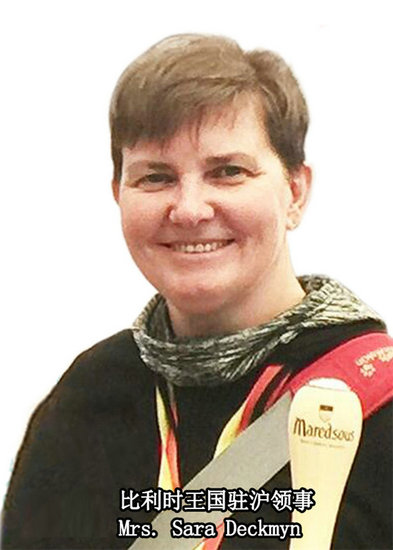 比利時(shí)駐滬商務(wù)領(lǐng)事Sara.Deckmyn女士(右二)攜領(lǐng)館人員與活動(dòng)組委會(huì)成員合影留念