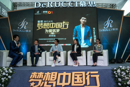 在LED大屏幕播放完公益視頻之后,現(xiàn)場舉行了一場簡短的而深刻的公益論壇。陳楚生與慕思寢具銷售中心總經(jīng)理江濤、紅星美凱龍深圳世紀(jì)中心商場常務(wù)副總經(jīng)理蔡世芳、慕思寢具深圳分公司總經(jīng)理許皓玲、中國扶貧基金會代表盧志芳共同分享了自己的公益理念,同時也號召更多的人關(guān)注公益、參與公益。