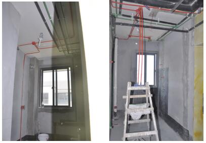 第一家參觀的工地是一套92平米的兩居戶型,這個工地的施工進度正在進行水電施工