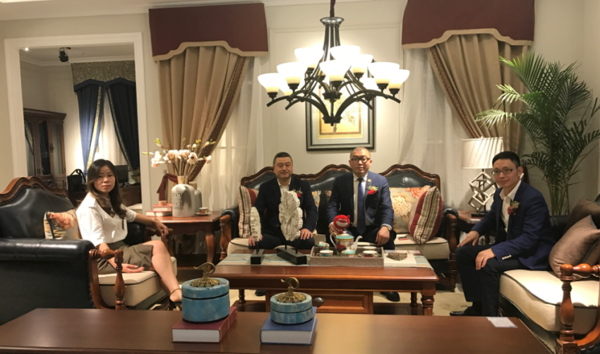 洛曼家居李國慶董事長(左2)、詩海康營銷策劃的董事長吳永康(左3)洛曼家居營銷副總李宗君(右1)
