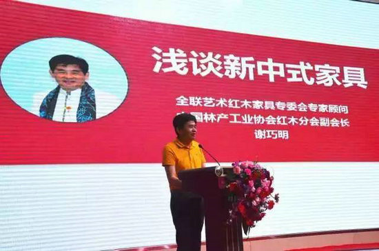 全聯(lián)藝術紅木家具專業(yè)委員會專家顧問、中國林產(chǎn)工業(yè)協(xié)會紅木分會副會長謝巧明則以《淺談新中式家具》主題分享,分析得出新中式已經(jīng)成為紅木家具行業(yè)發(fā)展速度最快、潛力最大的領域之一,有著巨大的市場空間,紅木家具企業(yè)應共同扛起新中式家具的大旗。