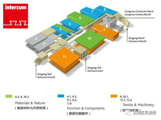 ▲今年的interzum展進行了擴容,共規(guī)劃11個展館,主要分為家居材料與天然材質(zhì)、家居功能配件、紡織與機械三大展區(qū),涉及品類之廣位居所有同類展會之首