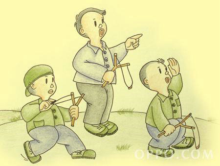 無論在農村還是在城里,大概沒有不玩彈弓的。尋根樹杈,纏上兩根皮筋,一副簡易的彈弓也就制作完成了。對男孩子來說,彈弓的魅力是無與倫比的,可以約上三兩伙伴一起去打鳥兒,打傷大院里的老母雞,打碎隔壁家的玻璃;歡樂總是伴隨著淡淡的悲傷,彈弓總會被比自己大的伙伴、家長、老師沒收。那年的我們總是那么的萬能,用不了多久一把新彈弓又會出現(xiàn)在我們的手上。