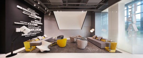 這個(gè)獨(dú)立的休息區(qū)設(shè)計(jì)簡(jiǎn)潔明快,地毯上的陀螺椅嵌入盜夢(mèng)空間的元素,沒(méi)有冗余的設(shè)計(jì)讓人仿佛走進(jìn)另一個(gè)空間。