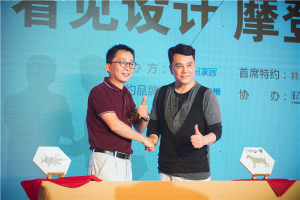 特地·負離子瓷磚董事總經理李強先生以及主講嘉賓張清平老師 共同簽署特地品牌的全新升級