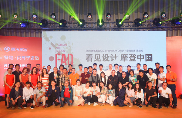 “看見設計 摩登中國”2017騰訊家居FAD全國巡講·昆明站,首席特約特地·負離子瓷磚,特約品牌老板電器,協(xié)辦單位云南省室內設計行業(yè)協(xié)會。