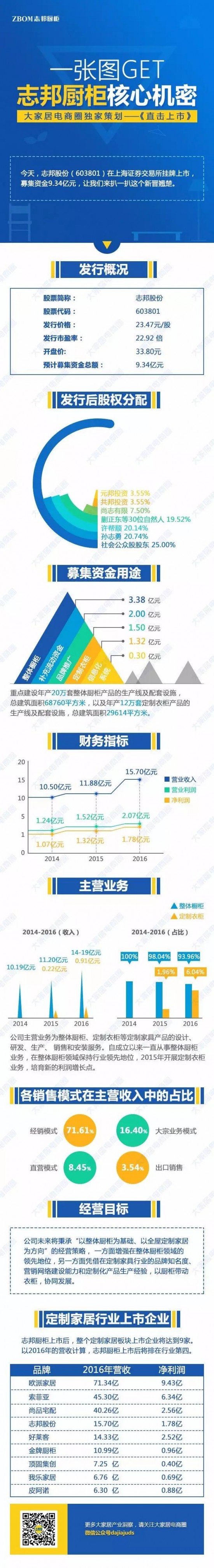 志邦股份管理層表示,登陸資本市場(chǎng)使公司步入了發(fā)展的新階段,同時(shí),公司也將因此迎來(lái)更多新的機(jī)遇與挑戰(zhàn)。未來(lái),志邦股份將繼續(xù)憑借“以專(zhuān)業(yè)見(jiàn)長(zhǎng)、以設(shè)計(jì)領(lǐng)先”為核心競(jìng)爭(zhēng)力,倡導(dǎo)“專(zhuān)注廚房,更懂生活”的品牌理念,立足華東、發(fā)展全國(guó)、輻射全球,將公司逐步打造成國(guó)際一流的、設(shè)計(jì)領(lǐng)先的定制家具專(zhuān)業(yè)企業(yè)。