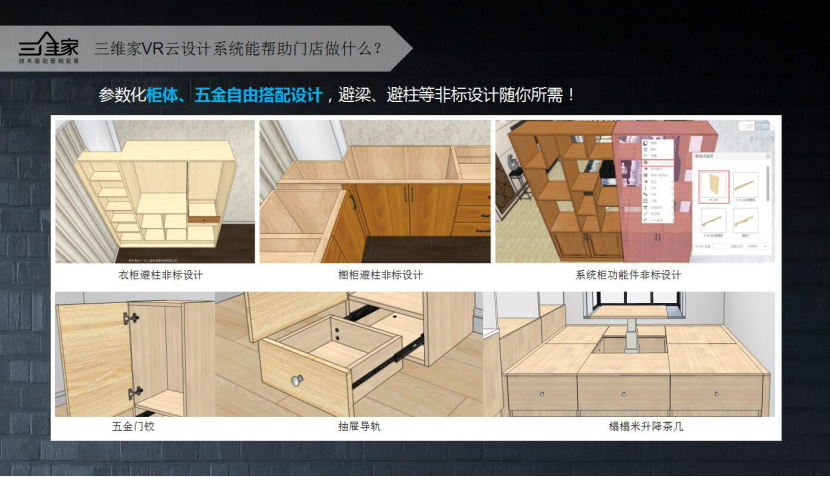 互聯(lián)網(wǎng)渠道是一次基因再造,改造家居建材企業(yè)所有跟消費(fèi)者的關(guān)系,改造生產(chǎn)線,改造家居行業(yè)內(nèi)幾乎所有的能力。這也是三維家一直在做的事情,做一套產(chǎn)品數(shù)據(jù)庫以智能算法為基礎(chǔ),用各種工藝規(guī)則驅(qū)動(dòng)零件尺寸的生成,可以支持門店任意非標(biāo)準(zhǔn)化的智能化設(shè)計(jì)。此外在三維家云制造軟件方面,還包括解決拆單、零件圖的輸出、開料優(yōu)化、按不同供應(yīng)路線優(yōu)化供應(yīng)路徑,從而實(shí)現(xiàn)各個(gè)設(shè)備加工文件的對接、打包、裝修成單、生成發(fā)貨清單等功能。