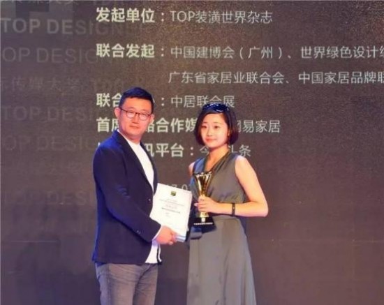 朱志康空間規(guī)劃有限公司設(shè)計(jì)總監(jiān)朱志康為吳巍代表頒獎(jiǎng)