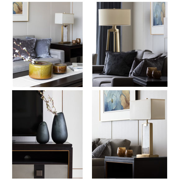 “對(duì)于230㎡的大平層而言,簡約中還需要一些東西來襯托房子的氣度。” 設(shè)計(jì)師蘇甜說,“硬裝墻面有金色線條,所以我用了簡單的金色元素來呼應(yīng)。”