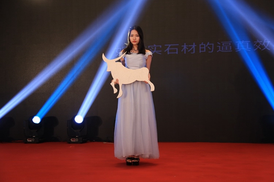 最后迎來了藝術(shù)東鵬新品秀,模特懷抱新品走秀帶領(lǐng)大家走向活動高潮。新品展示包括:“土耳其灰”、“新世紀大理石”、“蒂諾米黃”、“莎麗玉”、“意大利雪花白”、“金絲米黃”、“爵士白”、“紅花白玉”、“土耳其米黃”、“撒哈瑪” 、“城堡灰”、“芬蘭米黃”。