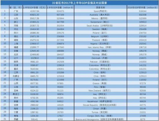 國是直通車根據(jù)世界銀行公布的2016年各國GDP總量,經(jīng)過間接換算,帶大家看看你的家鄉(xiāng)與相當(dāng)于哪個國家?