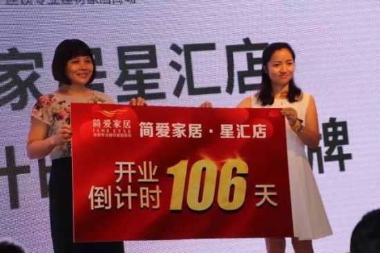 依托十年連鎖專業(yè)建材家居商場運作的成功經驗,簡愛家居洞察市場消費趨勢,立足中山南區(qū)CBD黃金地段購物中心,坐享成熟、完善、頂級的商業(yè)環(huán)境,與國內優(yōu)質家居大牌安樂窩戰(zhàn)略合作同臺共舞,簡愛家居星匯店在萬眾期待下將于今年的11月23日華麗綻放。在距離開業(yè)106天的宴會上,簡愛家居一大區(qū)總經理羅輯巧女士現(xiàn)場為簡愛家居星匯店授牌,由星匯店總經理唐美玉女士作為代表接收倒計時授牌,讓臺上臺下一起感受這份盛大的喜悅。