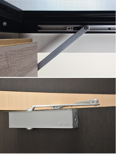 在一些場(chǎng)合,如果雙扇們不能很好的閉合,就會(huì)產(chǎn)生安全等一系列問(wèn)題,比如:雙扇防火門在火災(zāi)時(shí)由于人員進(jìn)出,如果無(wú)法保證按正確的順序關(guān)閉,就會(huì)產(chǎn)生門隙問(wèn)題,而無(wú)法達(dá)到防火隔煙的要求。因此,順位器多用于防火門上。海福樂(lè)G96GSR 系列平滑搖臂,內(nèi)置順序調(diào)節(jié)器,確保被動(dòng)門優(yōu)先于主動(dòng)門關(guān)閉。它是通過(guò)一個(gè)推桿夾緊系統(tǒng)的運(yùn)作來(lái)保證正確的閉門順序,由于系統(tǒng)獨(dú)立于閉門器的油壓系統(tǒng)工作,因此特別安全可靠。