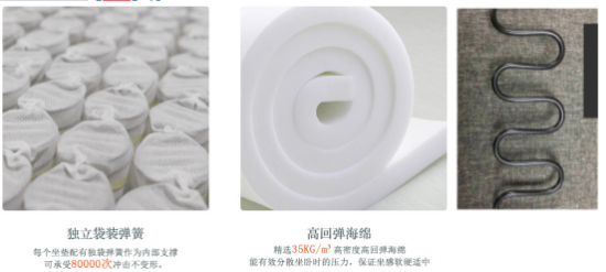 沙發(fā)墊填充物包括高回彈海綿以及獨(dú)立袋裝彈簧,增加沙發(fā)彈性的同時(shí)也延長其使用壽命。沙發(fā)底架采用蛇形彈簧連軸器,這是當(dāng)今國際機(jī)械領(lǐng)域的較佳軸聯(lián)接傳動(dòng)部件,擔(dān)負(fù)這床底扭矩和緩沖的作用,減振性好,承受變動(dòng)載荷范圍大,能承重600斤,10年使用不變形。沙發(fā)所用木料也均來自海拔2000米以上的高寒落葉松,材質(zhì)堅(jiān)固、硬度強(qiáng)、不易蟲蛀發(fā)霉、經(jīng)久耐用。