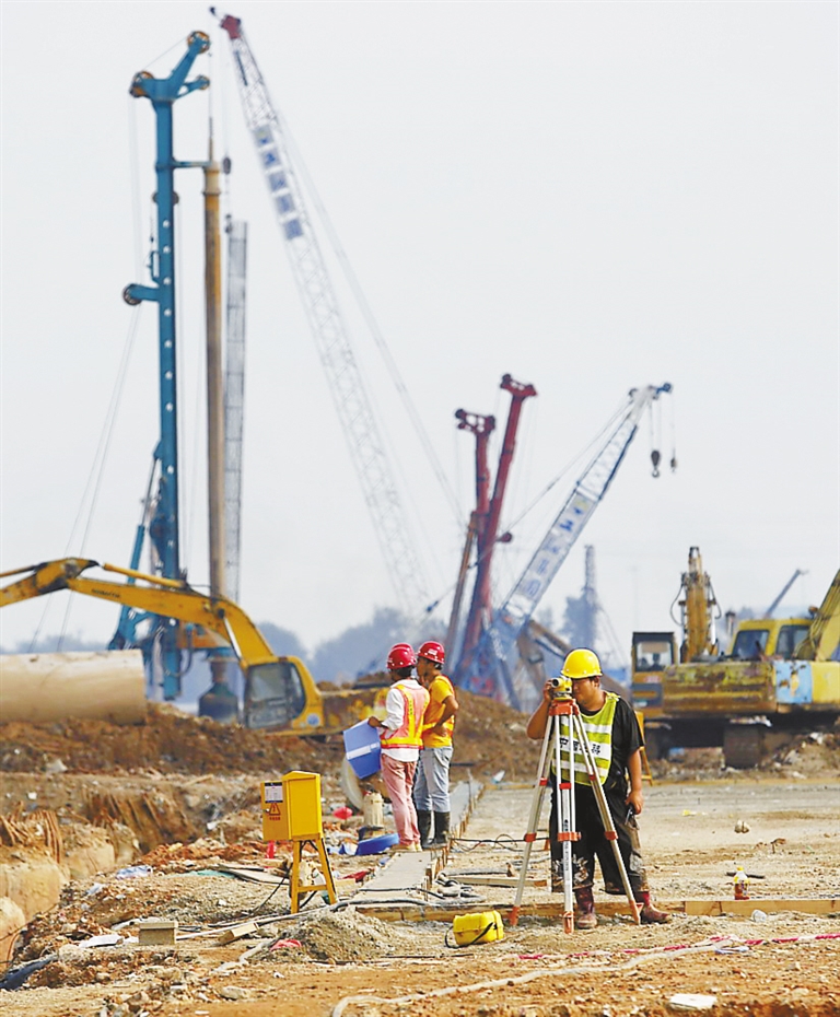 近日,深圳商報(bào)記者來到深圳市政建設(shè)中的重大工程——深圳國際會(huì)展中心進(jìn)行了一次高溫大工地式的體驗(yàn)。只見工地上全部是基坑支護(hù)和樁基礎(chǔ)施工,打樁、焊接和運(yùn)輸正火熱進(jìn)行中。平均每天有3000余工人,大小樁基車及各類運(yùn)輸車輛300多臺,使這火熱龐大的工地上呈現(xiàn)一片繁忙景象。