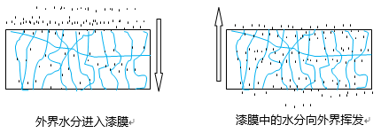 這些“通道”通過毛細管作用將漆膜內(nèi)部水分輸送到漆膜表面,使之揮發(fā)到空氣。