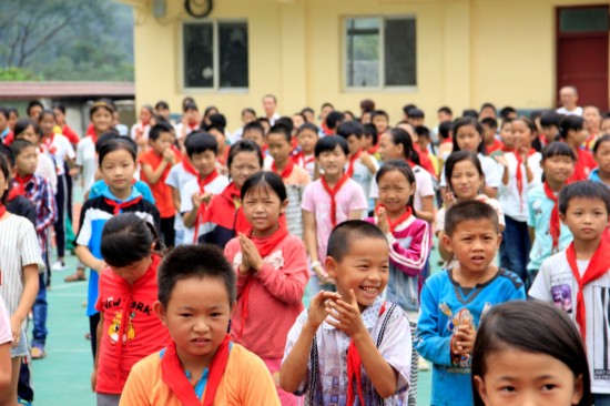 國旗下質(zhì)樸而富有朝氣的歌聲,流入出對學(xué)習(xí)的渴望和對遠道而來的客人的熱情,久違的校園記憶在剎那間迸發(fā),那一刻我們都是小學(xué)生。