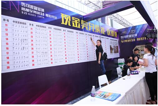 同時,為慶祝開業(yè)活動,馬可波羅瓷磚更是豪氣讓利、大惠全川。此次前所未有的讓利大促吸引了全川馬可波羅瓷磚的粉絲們,很多來自達州、瀘州、廣元等地區(qū)的消費者一大早就從各地趕到至尊館,排隊搶購爆款產(chǎn)品!除了常規(guī)的爆款優(yōu)惠以外,馬可波羅瓷磚還抽取了100個1000元現(xiàn)金大獎!現(xiàn)場的消費者直呼:“賺翻了!太值得了!買瓷磚只認馬可波羅瓷磚!”當天活動還有定金升值、專屬讓利、超值換購等感恩活動回饋全川廣大消費者。