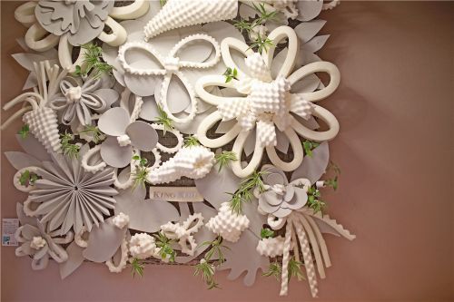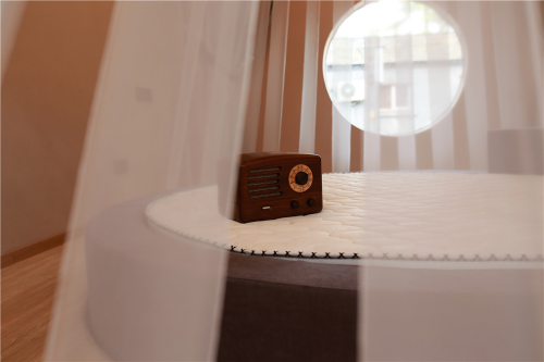一進門的墻面裝置藝術(shù)”繁榮時代“由KINGKOIL美國金可兒聯(lián)合法國著名設計師Paloma Bouteleux創(chuàng)作,該作品選用了金可兒床墊生產(chǎn)過程中所使用的原材料,包括高品質(zhì)海綿、彈簧、軟氈與硬氈制作而成。作品希望用友好而親切的感官刺激,解構(gòu)你身下的“親密愛人”,由此喚醒,每個人對民宿睡眠質(zhì)量的重視。