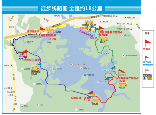 活動(dòng)屬于戶外運(yùn)動(dòng)初級(jí)強(qiáng)度,途中共設(shè)置4個(gè)簽到點(diǎn),新增設(shè)五星服務(wù)區(qū),是由嘉華酒店集團(tuán)旗下的五星級(jí)酒店提供支持和特色服務(wù)體驗(yàn)。開(kāi)始于早上8:00,持續(xù)3小時(shí)的18公里徒步路線,于中午12:30結(jié)束。