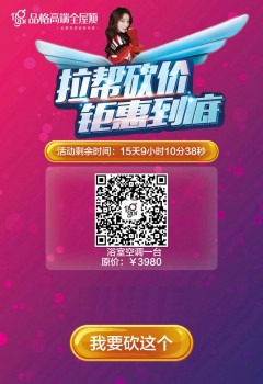 從11月10日上午9:00開始,砍價(jià)活動(dòng)截止到11月17日24點(diǎn),沒有分享的小伙伴要抓緊時(shí)間啦,趕緊發(fā)動(dòng)七大姑八大姨、同事同學(xué)朋友等廣大人民群眾的力量,幫你用最實(shí)惠的價(jià)格得到你要的銳智5.0浴室空調(diào)吧!