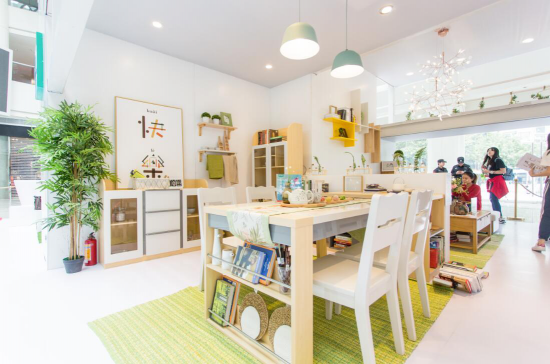 據(jù)林氏木業(yè)副總經(jīng)理馬燦興介紹,“這是林氏木業(yè)攜手天貓打造的雙11快閃店,意在雙11倡導(dǎo)一種全新理想家的理念——“家不是一成不變的,它有無限種可能。大家可以通過發(fā)揮自己的想象力與原創(chuàng)力,去自由探索家的多種模樣。”因此,這次的快閃店設(shè)計(jì)為花樣坊、食愈坊、夢(mèng)想坊、AR酷玩區(qū)四個(gè)空間。