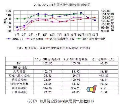 BHI反映了建材家居裝飾裝修材料的景氣度及市場走向,同時與國家房地產(chǎn)開發(fā)景氣指數(shù)對比,還能反映出房地產(chǎn)剛性需求的強弱。