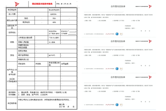 會前,所有參會企業(yè)需填寫資質預審文件,內容涵蓋企業(yè)基礎信息、驗廠報告、產品型號價格以及以往合作案例,這些資料非常重要哦!因為這些資料在會前給所有到參會開發(fā)商,他們會提前對企業(yè)進行評估并進行項目匹配,以便現(xiàn)場可以更深入的溝通并簽訂合作意向書。在這里小編偷偷的把資質預審文件和合作意向書給大家LOOK LOOK O(∩_∩)O哈!