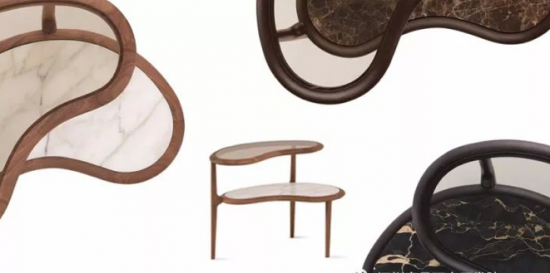 作為成熟經濟體的實木品牌,Ceccotti的材料體系已經走出了一材到底的束縛,在實木基礎上納入了相對豐富的材料體系。這一特點在下圖的Fagiolo茶幾上得到充分體現。