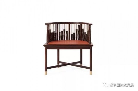 “算椅”是歲集的一個(gè)早期作品,有強(qiáng)烈的藝術(shù)裝置特性,也是歲集家具中最富有傳統(tǒng)中式味道的個(gè)別之一。黑檀木構(gòu)筑成明式椅子的造型,坐墊處貼上服帖精致的真皮皮面,,座腳采用黃銅包裹來裝點(diǎn)。在背靠處裝入一節(jié)一節(jié)的算珠,有強(qiáng)烈的東方符號(hào)和裝置藝術(shù)的氣韻。