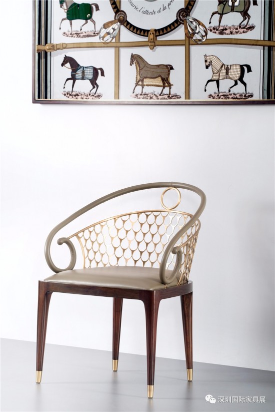 看似簡單的圈椅,靈感源自中國傳統(tǒng)圈椅,椅背以激光切割出抽象牛角圖案,并取用傳統(tǒng)明式手工榫接工藝制作精細牢固的酸枝木架構(gòu),單椅扶手和茶幾坐墊的每一針一線都流露著匠人的心思,以匠人之手賦予家具靈魂。