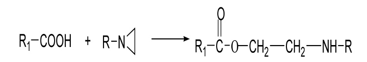 氮丙啶化合物是羧基的良好交聯(lián)劑,常溫下氮丙啶與羧基可發(fā)生快速反應(yīng)形成交聯(lián),反應(yīng)式如下所示。