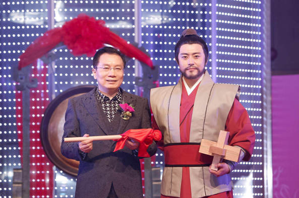 當(dāng)一身古裝的魯班手捧魯班鎖闊步走上舞臺(tái)時(shí),車建新還十分隆重地拱手躬身向祖師爺魯班行傳統(tǒng)尊師禮。最令人拍案叫絕的是,魯班從榫卯結(jié)構(gòu)的魯班鎖中抽出魯班槌,將這件代表了匠心創(chuàng)新精神的魯班信物交接給木匠出身的魯班傳人車建新。而這把獨(dú)一無(wú)二的魯班槌也被車建新用來敲響紅星美凱龍的上市金鑼??梢哉f是極具家居行業(yè)個(gè)性特色的敲鑼儀式了。