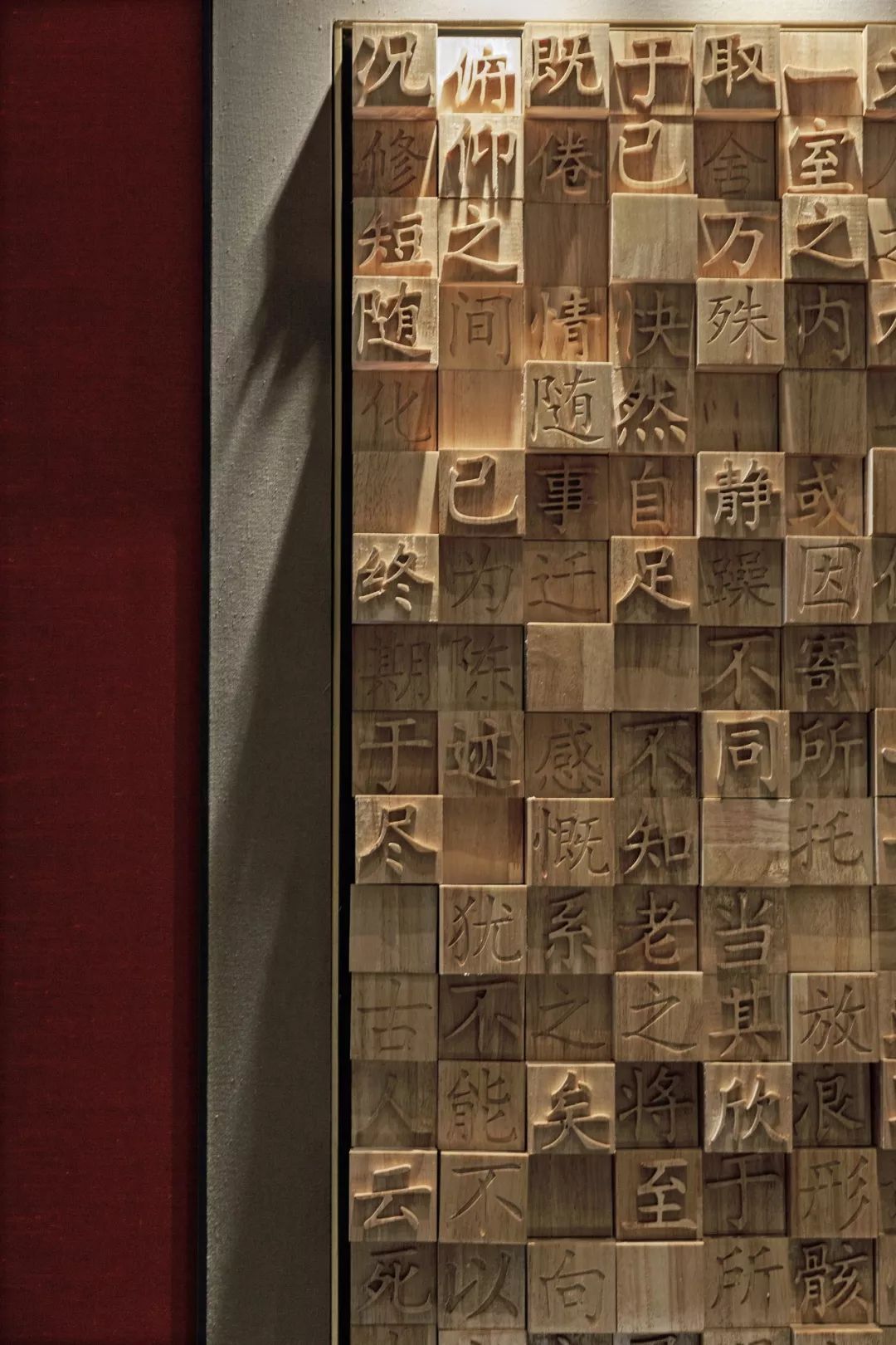 柔和的燈飾如團(tuán)簇的祥云,漂浮在天花,與遒媚勁健的書法遙相呼應(yīng),一柔一剛,似一個(gè)個(gè)符號(hào),排列成無聲的舞曲,靈動(dòng)或峭薄,淡雅或孤高。