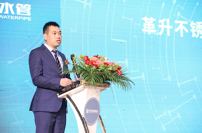 “水是生命之源。世界衛(wèi)生組織WHO調(diào)查顯示:80%的疾病和水有關(guān),特別是由于飲用不良水質(zhì)而導(dǎo)致的疾病達(dá)50多種。可以說,飲用水的安全,決定著我們的生命健康,影響著我們的生命質(zhì)量。”陳革升在致辭中表示,傳統(tǒng)的銅管、塑料管因腐蝕、結(jié)垢導(dǎo)致的二次污染問題直接威脅每個人的健康。從政策導(dǎo)向、消費(fèi)升級及國際水管行業(yè)變遷規(guī)律可以看出,“高水質(zhì)、低維護(hù)、長壽命”的不銹鋼水管是行業(yè)未來必然選擇,高優(yōu)品質(zhì)的不銹鋼水管在不久的將來將全面替代傳統(tǒng)銅管、塑料管等管道,廣泛應(yīng)用于直飲水、建筑給排水、消防、燃?xì)?、食藥品生產(chǎn)等領(lǐng)域。