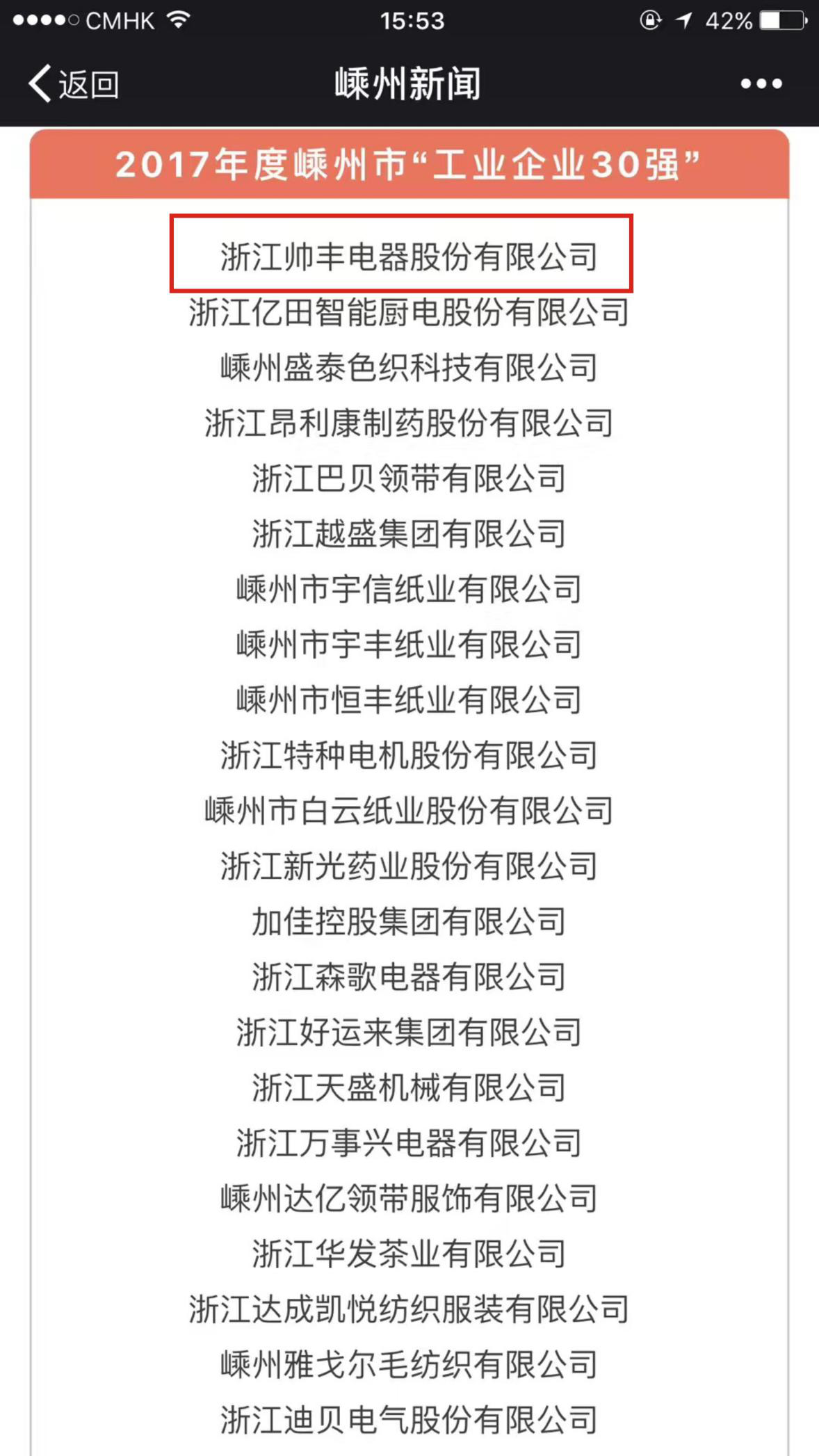 2014年帥豐迅速崛起,強(qiáng)勢(shì)入圍嵊州市工業(yè)企業(yè)三十強(qiáng)第十八名。