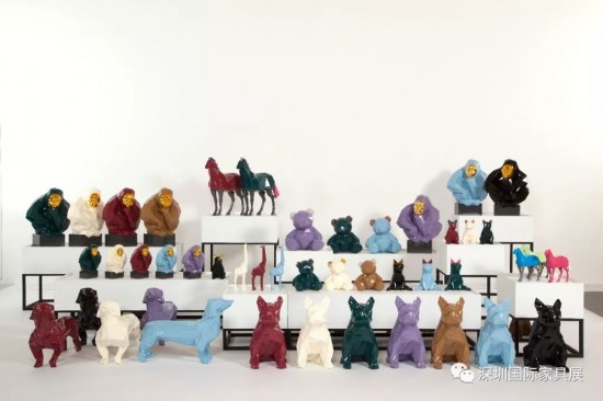 “白夜童話”和“摩登馬戲團系列的作品主要材質是寶麗石樹脂,均顛覆了傳統(tǒng)雕塑的制作方法,使用數字創(chuàng)作的手段結合樹脂翻模工藝,實現(xiàn)了作品立體形態(tài)的標準化生產。