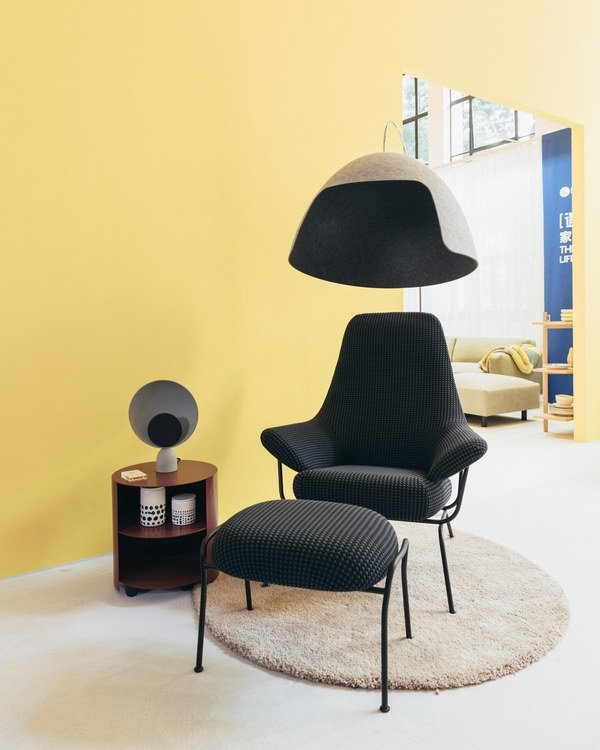 此次展出柯蒂Koti系列橄欖綠三座沙發(fā),在芬蘭語中Koti 是家的意思。這款沙發(fā)和配套的小方座,是斯德哥爾摩設(shè)計工作室“From Us With Love對家的溫暖的詮釋。三座沙發(fā)的大尺寸,給人無與倫比的安全感。溫柔的橄欖綠,簡潔、寬闊的線條,在保持摩登的同時,讓人足夠安心適宜,令人自然舒心。