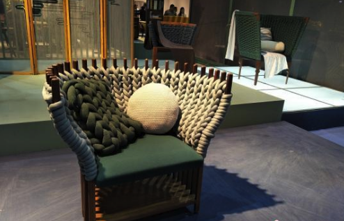 圖為現(xiàn)場(chǎng)展出編織設(shè)計(jì)的家具非常有趣