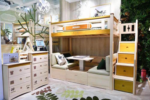 滑板轉(zhuǎn)角雙層床,汲取滑板的輪廓元素,上下床以轉(zhuǎn)角的形式為組合方式,可進(jìn)行上下雙層床與轉(zhuǎn)角雙層床及拆分上下床三種模式的自由切換,且可搭配增加儲物層架的個性衣柜及節(jié)省空間的簡潔實(shí)用學(xué)習(xí)桌,給予孩子多變的特殊體驗(yàn)。除此之外還有更多高顏值、高性價比的系列產(chǎn)品及套房神秘現(xiàn)身,屆時將再次掀起兒童家具市場新風(fēng)潮。
