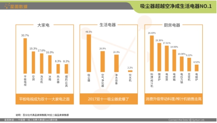據(jù)《生活電器行業(yè)2018年1月份數(shù)據(jù)報(bào)告》顯示,吸塵器憑借當(dāng)月總銷售額超過2億,穩(wěn)居生活電器行業(yè)核心品類的銷售額前五名;而去年雙十一,吸塵器更是超越空氣凈化器,一躍成為當(dāng)日生活電器銷售榜第一。當(dāng)“中國家庭滲透率只有20%”和“全球性市場規(guī)模產(chǎn)品”這兩個(gè)看似矛盾的關(guān)鍵詞集于一身,吸塵器產(chǎn)業(yè)事實(shí)上已經(jīng)打開一個(gè)具有無限發(fā)展?jié)摿Φ目臻g。