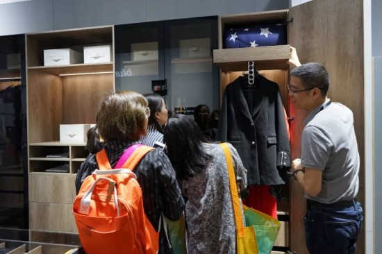 島臺衣柜的五金解決方案,經(jīng)由工作人員介紹,令參觀者大為贊賞。